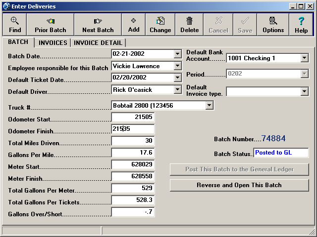 This screen was designed so that you can enter delivery tickets very quickly. If you can use the ten key pad you'll fly.