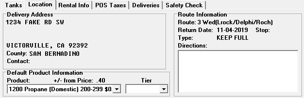Each tank should have a default product assigned to it. A "default product" is simply the propane product that each tank usually gets delivered to it. The reason for doing this is to save you significant time and keystrokes when you're entering invoices.