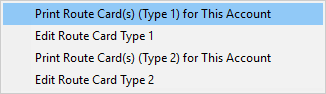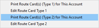 There are two versions of the Route Card. Both contain the same information but "Type 1" prints horizontally (landscape) and "Type 2" prints vertically (portrait).